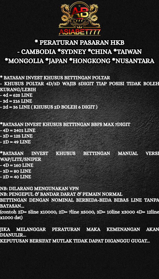 ASIABET777 adalah pilihan terbaik bagi bettor yang mencari situs BO bandar togel resmi dengan hadiah 4D terbesar dan sistem paling trusted. Dari pasaran lengkap, keamanan tingkat tinggi, hingga pelayanan profesional — semuanya dirancang untuk memberikan pengalaman bermain yang maksimal. Saatnya bermain dengan nyaman dan yakin bersama ASIABET777, dan buktikan sendiri sensasi menang besar setiap harinya.